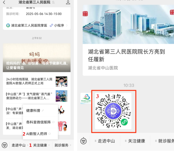 进入“91porn ”公众号,选择“关注健康”菜单栏,选择“AI数智人药师”,即可弹出二维码,长按二维码即可识别,开启您的智慧用药之旅!