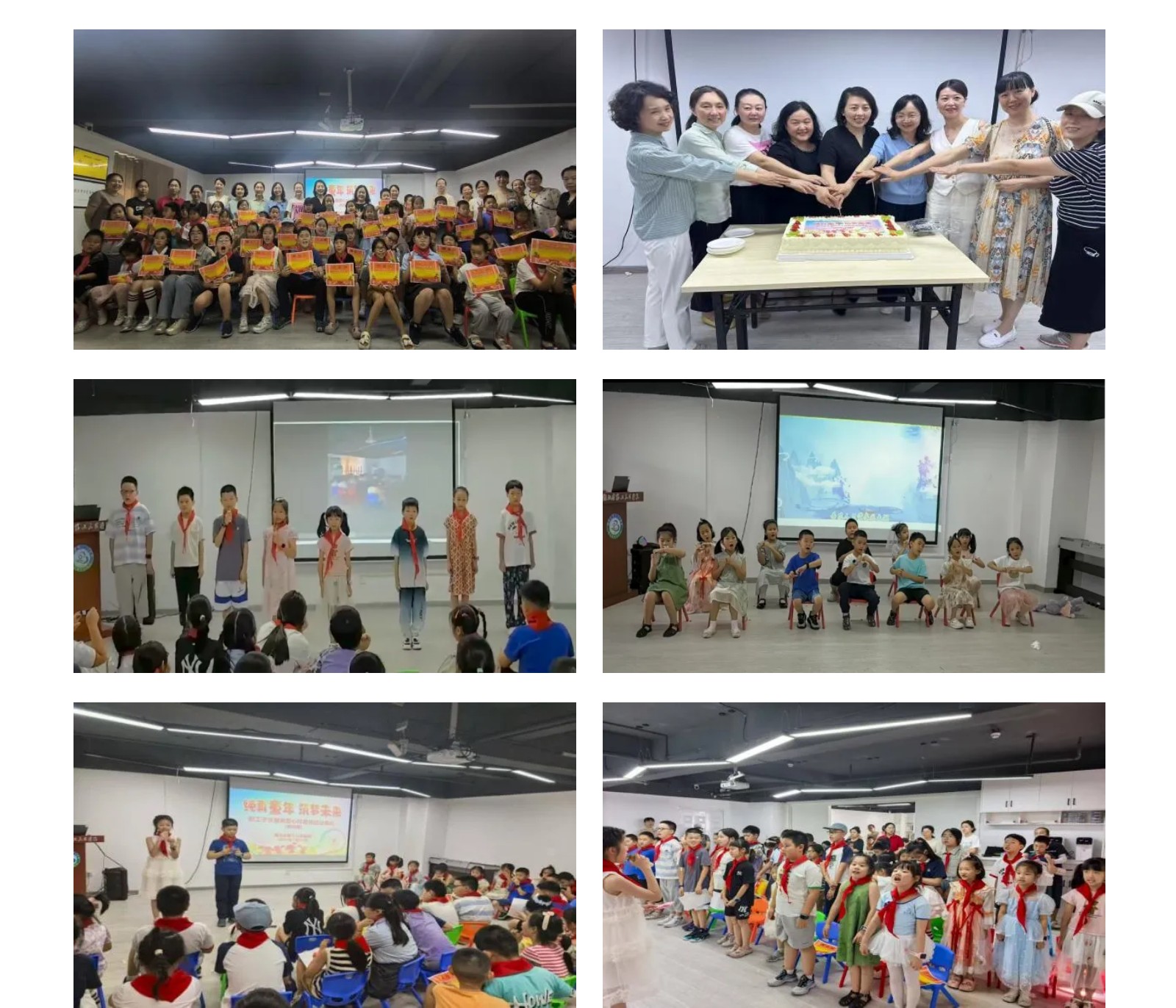 陈明书记为硚口院区托管班孩子们颁发优秀学员证书及纪念品,并与部分职能部门主任一同为孩子们切分蛋糕。托管班的孩子们精心准备了节目,包括手势舞《勇气》《上春山》以及诗朗诵《少年中国》等。孩子们清澈的声音、可爱的动作,展现出满满的自信与喜悦,结业典礼在庄严的少先队队歌中落下帷幕。