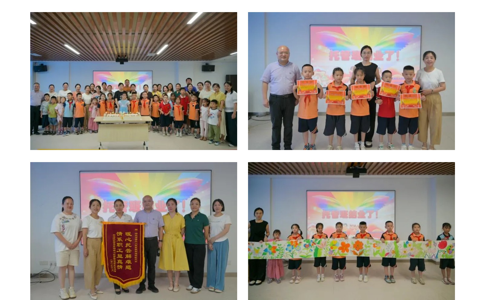 阳逻院区家长代表刘璐表示,作为一名医务工作者,以往暑假最担心孩子写作业和安全问题,此次托管班完美解决了这些担忧,丰富多样的课程让孩子每天都期待第二天的托管生活,回家还会兴奋地展示学到的科学知识,感谢医院组织的托管活动;志愿者代表杜珍表示,在提供志愿服务的同时自己也得到成长,学会了做孩子的贴心人;学员代表程彬彬感谢托管班老师和工会叔叔阿姨的细心照顾,通过这次托管班自己深入了解父母工作的地方,作为医二代感到光荣,今后会更支持父母工作;职工蔡孟良家属向医院托管班赠送了印有“暖心托管解难题,情系职工显真情”的锦旗。