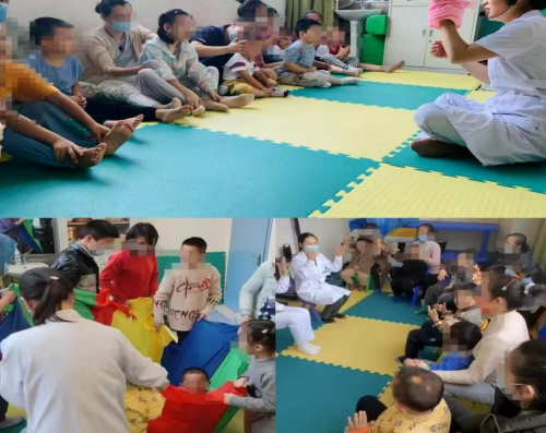 3、家庭延伸: 鼓励家长利用日常物品进行音乐游戏,每月开设家长课堂,将湖北民歌融入康复训练。