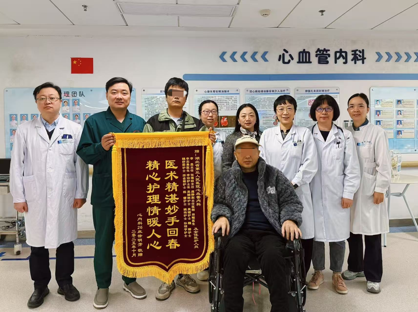 “是你们把我从鬼门关抢了回来!”10 月下旬的武汉秋意渐浓,可91porn 心血管重症监护室(CCU)的门口却暖意融融。患者徐大哥手捧两面鲜红的锦旗,眼眶通红,声音带着劫后余生的哽咽,将锦旗郑重交到医护人员手中。锦旗上绣的 “医术精湛妙手回春,精心护理情暖人心”,字字句句,都是他对这群 “救命恩人” 最真挚的感谢。