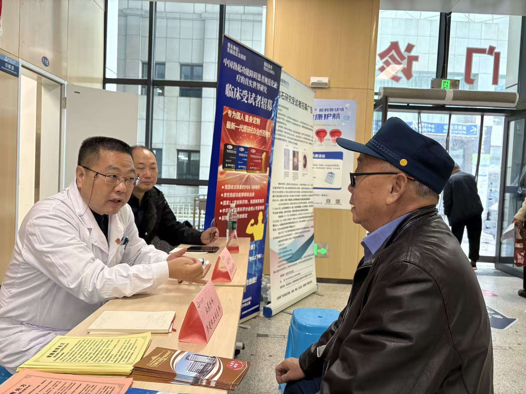 同时现场还设立了临床实验招募点,吸引了大量患者咨询。项目组通过清晰的海报和细致的现场讲解,向患者介绍了研究内容与参与方式。该临床实验旨在探索男科疾病的新治疗方法,为患者提供更多的治疗选择。