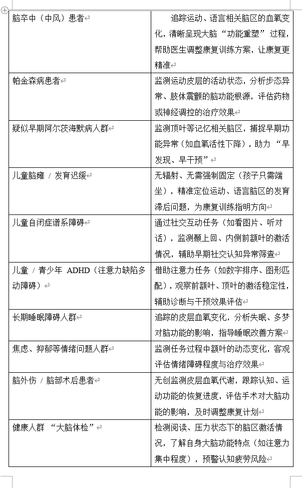 近红外脑功能成像系统(fNIRS)适用人群及核心作用:
