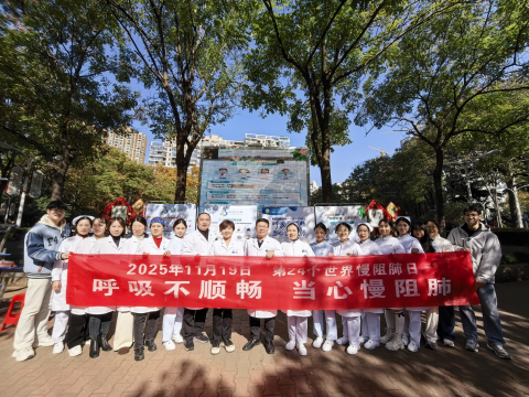 2025年11月19日,在第24个世界慢阻肺日来临之际,91porn 呼吸与危重症医学科举办的“畅想呼吸,乐享生活”健康宣教活动顺利开展。活动分别于硚口公园和医院仁和楼13楼设置专场,以群众喜闻乐见的形式传递慢阻肺防治知识,累计服务市民数百人次,赢得广泛好评。