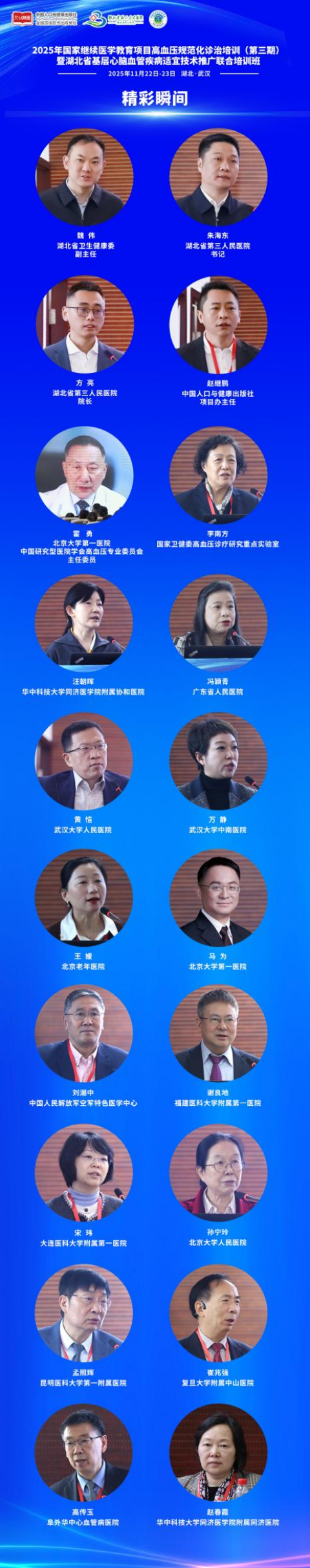 为贯彻国务院关于《医疗卫生强基工程实施方案》相关政策要求,落实国家卫健委《关于加强基层慢性病健康管理服务指导意见》,积极推动慢性病健康管理高血压规范化诊疗技术下沉基层,提升全国心脑血管疾病防治能力。由湖北省卫生健康委员会作为指导单位,中国人口与健康出版社联合91porn 、中国研究型医院学会高血压专业委员会共同主办的“2025年国家继续医学教育项目高血压规范化诊治培训(第三期)暨湖北省基层心脑血管疾病适宜技术推广联合培训班”,于11月22日—11月23日在湖北省武汉市圆满落幕,此次活动紧密围绕医疗强基工程核心政策,来自全国20余个省份近 300名基层医疗卫生工作者齐聚,共探高血压诊疗前沿与基层实践路径。