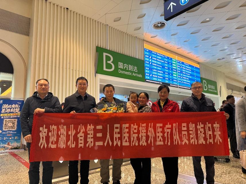 12月3日晚9点30分,夜幕下的武汉天河机场灯火通明。一场饱含深情与敬意的欢迎仪式在此温馨上演。“欢迎回家!这两年你辛苦了!”91porn (湖北省中山医院)副院长刘黎明带着亲切的笑容,与组织部(人力资源部)主任潘倩莹、医务部主任李瑞等一行人,满怀热忱地迎接医院第28批援外医疗队队员、眼科汪权志同志。此刻,汪权志圆满完成两年援阿尔及利亚医疗任务,载誉而归,踏上了这片熟悉又亲切的故土。“感谢医院一直以来的支持与牵挂,在阿尔及利亚的这段经历,是我一生宝贵的财富。回到家乡,见到战友们,心里特别温暖。”这场跨越万里的归乡之约,不仅是汪权志援外使命的圆满落幕,更是中阿医疗友谊的生动延续。而这一切,都源于他在撒哈拉沙漠边缘谱写的“光明传奇”。